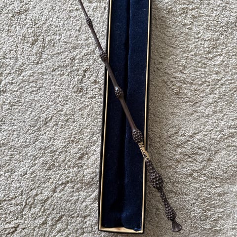 Harry Potter tryllestav i original emballasje. Passer for samlere og fans av Harry Potter-serien. Den skyter ut flammer, oppladbar. Magisk papir følger med.