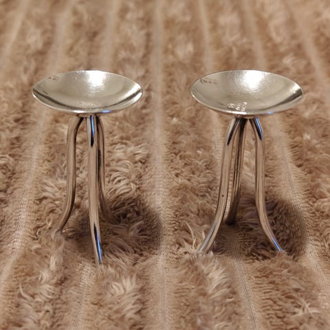 Må pusses, er stempler bak med OSP 40. Selges helst samlet eller minimum 6 stk. kun en uten stempel under. H 6,5cm foten er 4,5cm. 150,-