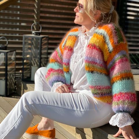Fargerik hjemmestrikket cardigan jakke