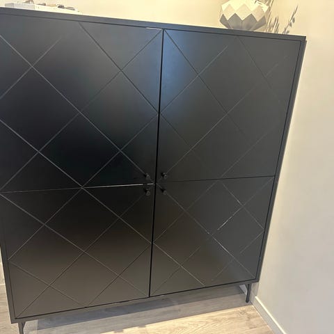 Mål skjenk: høyde uten ben 73, 5 cm. Lengde 166,2 cm og dybde 36,6 cm.