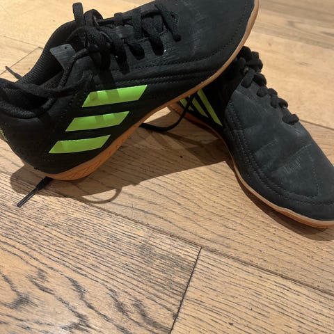 Adidas Champion Spesial innesko i neon grønn farge, størrelse 39. Skoene har lisser og er laget for innendørs bruk. Materialet er syntetisk med gummisåle for godt grep. Passer for både trening og konkurranse.
