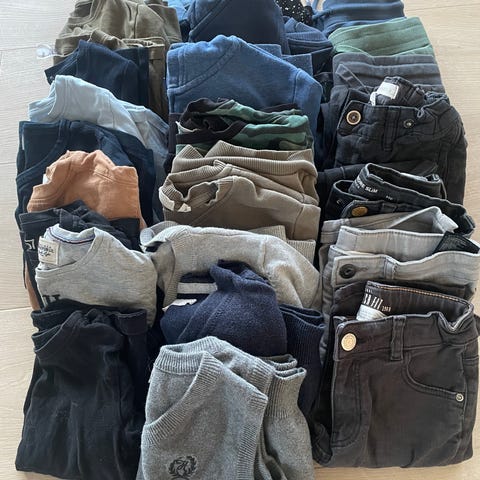 Klespakke str 140, 3 bukser, 2 gensere
