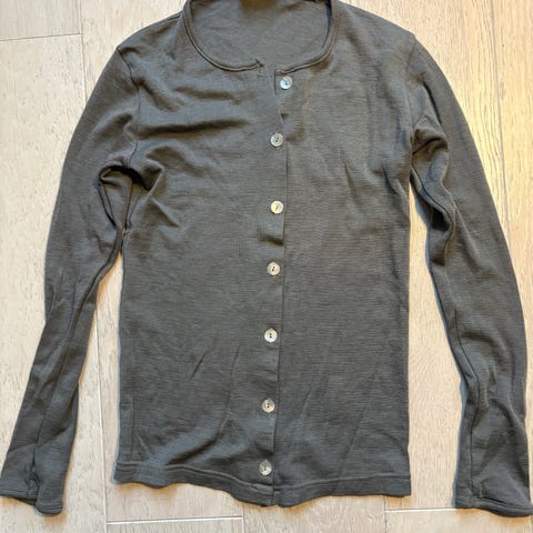 Nøstebarn ull genser i størrelse 152 for jente. Genseren er grå og laget av 70% ull og 30% silke.