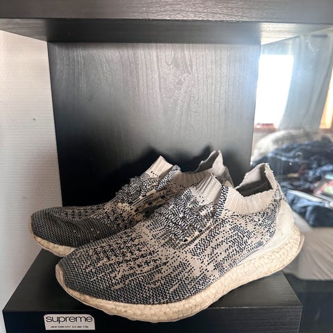 Adidas ultraboost uncaged i størrelse 43-1/3. Godt brukt, mest som innesko på jobb. Mangler innersåle.
