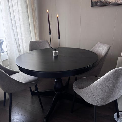 Sort bord og 4 stoler