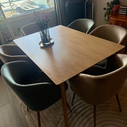 Fint spisestue bord med 4 stoler! ikke synlig brukt.