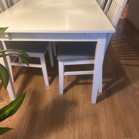 Passer fint til 4 personer, og kan ved enklere servering fungere for 6. Målene står oppgitt på det ene bildet.
