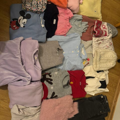 Stor klespakke i str. 134 til jente selges. Pakken inneholder blant annet mange kjoler, leggings, mange jeans, shorts, sett og pysjamaser. I tillegg følger det med noen ullsokker, regnjakker og andre plagg som passer godt til bruk om vinteren.