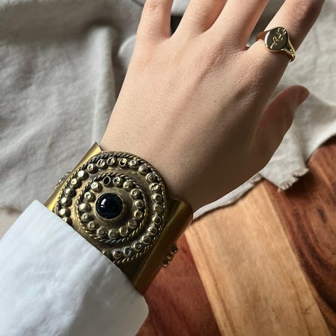 søkeord: gullfarge chunky bracelet cuff armcuff jewelry dame trendy vintage accessories fashion mote stylish jewelry armring justerbar brun