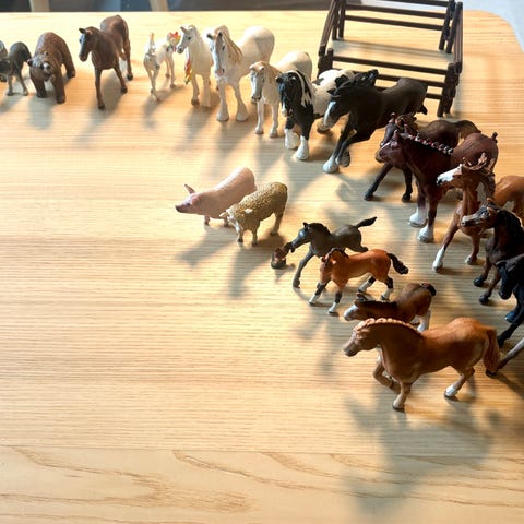 Fine dyr fra schleich. Også noen få fra andre merker. Over 60 stk totalt. Nypris trolig over 6 000 kr.