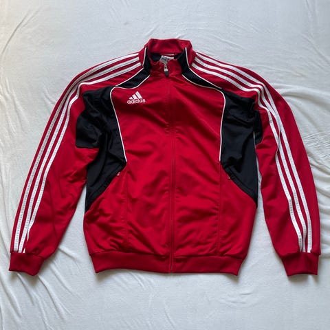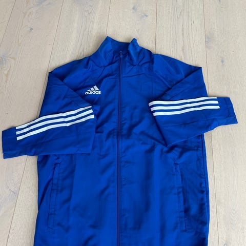 Adidas fotballjakke i størrelse 140 for barn. Jakken er grønn og designet for bruk innen sport.