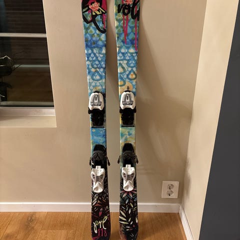 K2 twintip hvit/lilla 125 cm. (Disse har en svart og en hvit binding.)