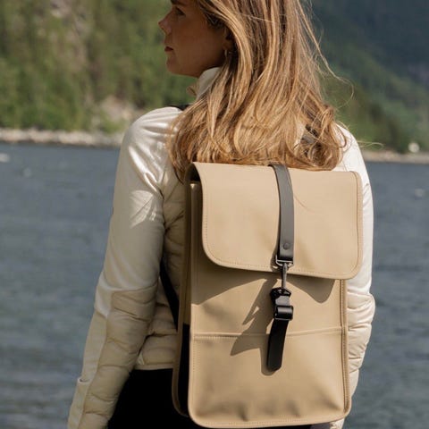 Med sitt rene, moderne design tilbyr denne ryggsekken en firkantet silhuett og en klafflukking sikret med magneter. Den har en laptoplomme som passer for enheter opptil 15 tommer, sammen med et romslig hovedrom. En diskret ekstern lomme på bakpanelet gir enkel tilgang til telefonen din.