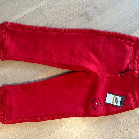 Grå joggebukse med striper i sidene, lommer, snøring.