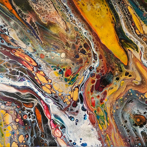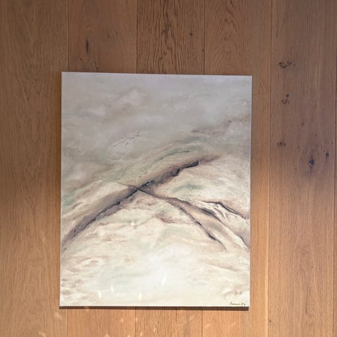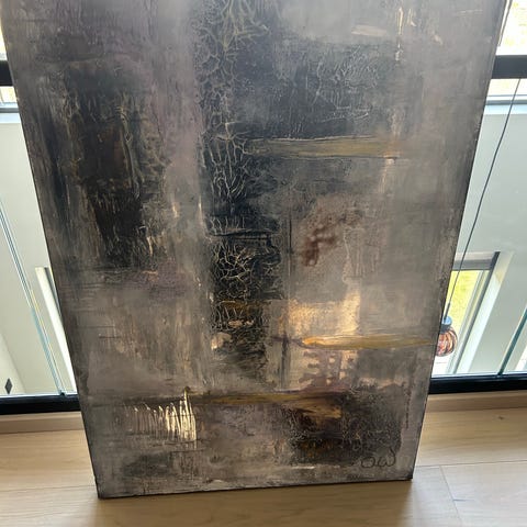Maleri med abstrakt motiv, laget i nøytrale jordfarger som beige, brunt og grått. Passer som veggdekor i ulike rom og innredningsstiler.
