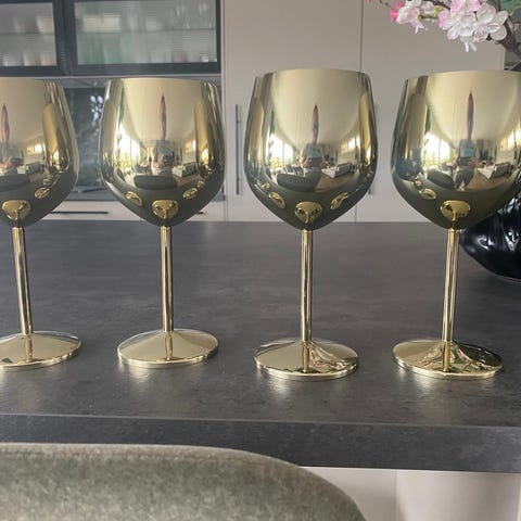 Selger gullfargede vinglass i sett med 4 - Har totalt 12 glass. De er helt urørt/uåpnet.