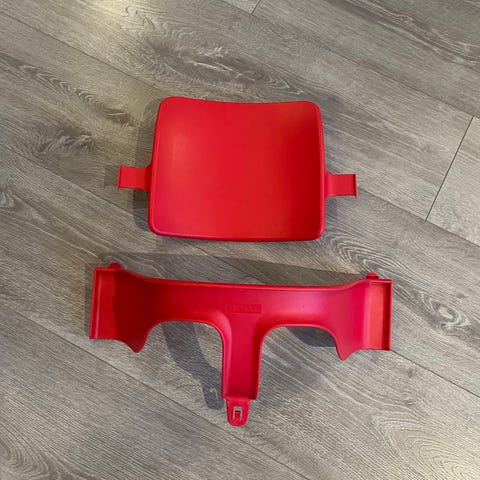 Fin og hel. En flekk. Mangler dog festebrakettene som sitter i stolen.