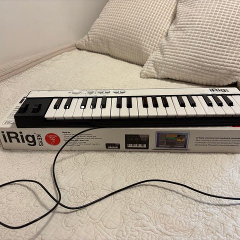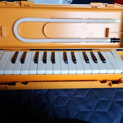 Selger en melodica (også kalt blåse-keyboard).