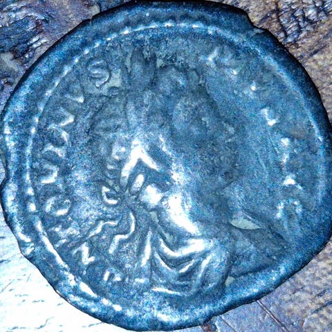 Romersk mynt laget av kobber. Mynten viser portrett av Antoninus Pius på forsiden og en stående figur på baksiden. Kommer med etui. Fra år 138-161. Kvalitet: 1+.