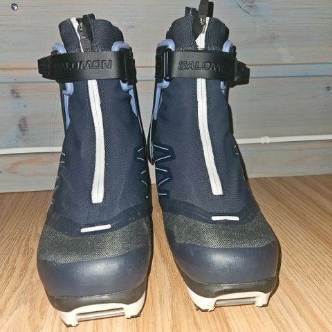 Skøyting Salomon RS8 ski i blå og svart farge. Skiene har Rottefella binding.