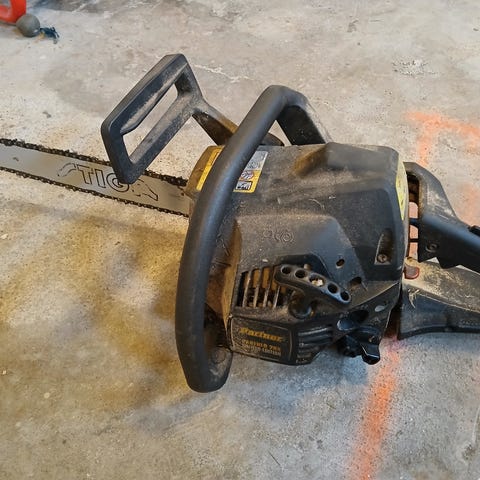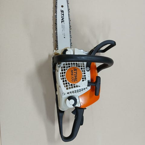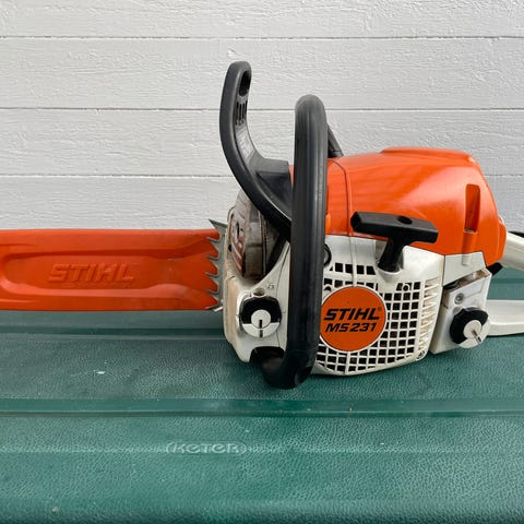 Stihl MS 250 C motorsag med 14 tommer sverd. Starter lett og går pent på tomgang.