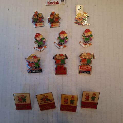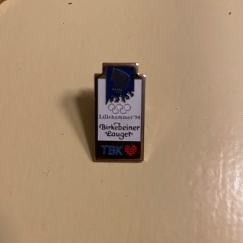 2 stk Norges Skiforbund pins med motiv av skiløpere. To forskjellige varianter i metall. Fra mellomkrigsårene, produsert av gullsmed firma Larsen i Oslo.