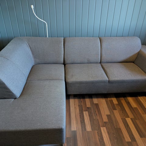Bohus sofa i grå mikrofiber (velour/alcantara). Sofaen har 2,5 seter med avtagbare puter og armlener på begge sider. Stoffet er mykt og slitesterkt, egnet for daglig bruk. Sofaen passer til stue eller oppholdsrom.
