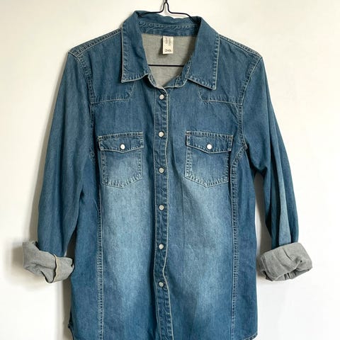 Vintage Y2K skjorte jakke.Oversized str. S. Passer M også.Jones New York Sport Petite. Flott navy farge. 100% cotton. Made in Hong Kong. Perfekt til layering! Veldig lite brukt.