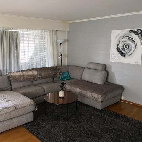 Sofaen er romslig og behagelig. Må hentes, men kan leveres mot tillegg på fra 500 kr, avhengig av avstand.