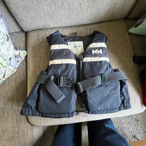 Helly Hansen redningsvest med 100N oppdrift, egnet for vekt 20-30 kg. Vesten er oransje og designet for sikkerhet ved vannaktiviteter.