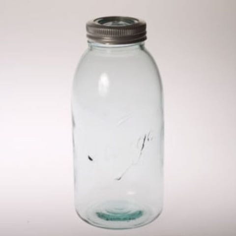 Stempel fra Christiania Glasmagasin (CG). Praktisk til hermetisering og sylting eller frysing av frukt og bær. Fint til å oppbevare f.eks. erter, bønner, gryn eller kjøkkenredskaper i.