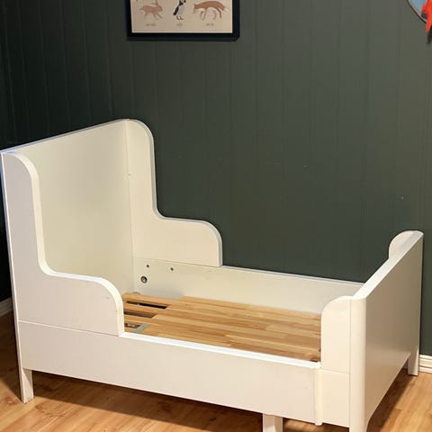 Brukt med noen bruksmerker men pent brukt fremdeles. Kan brukes som enkel og dobbelseng. Har en enkel madrass som kan fåes med om ønskelig. Godt med plass til oppbevaring i skuffene. Må hentes. Veldig grei seng både på barnerom eller gjesterom.
