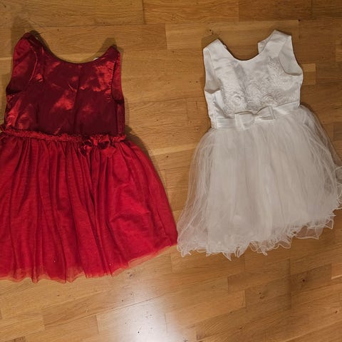 Fem kjoler i str 110 og 116 selges samlet.