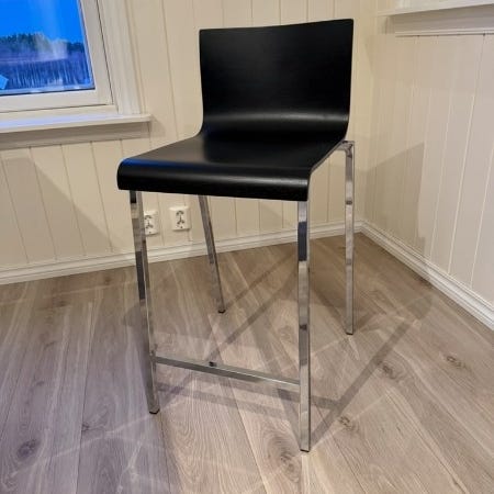 5 barkrakker, trukket om i kunstskinn. 100kr pr stk. Kvalitets rammeverk! 100 cm høyde rygg, 75cm til setet.