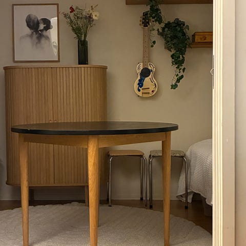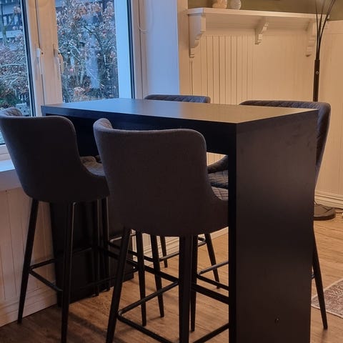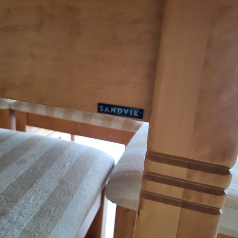 Meget solid spisegruppe. Men innleggsplate. Setene kan trekkes om.