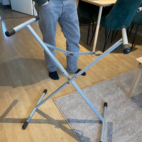 Keyboardstativ i svart metall. Praktisk og justerbart så det kan brukes i ulike høyder. Sammenleggbart for enkel transport og oppbevaring.