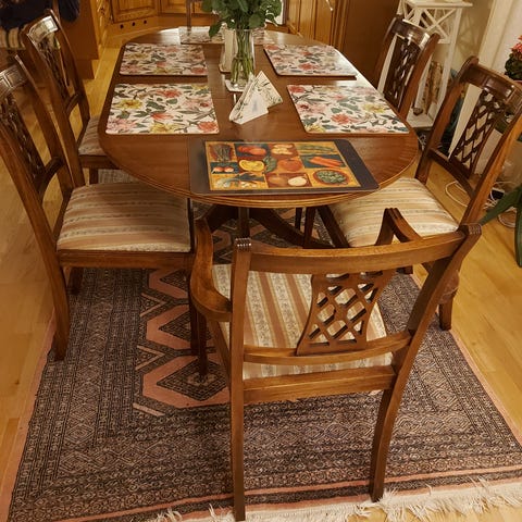 Heltre spisestue med 8 stoler selges.