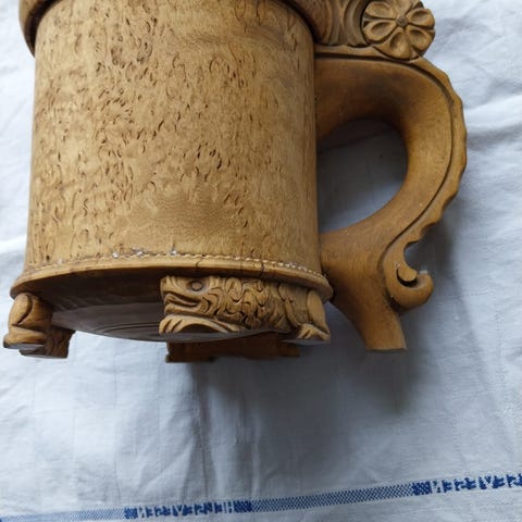 Selger en håndskåret steinboks med utskåret blomsterdekor på lokket. Boksen er laget av naturstein, trolig såpestein, og har et solid, gammelt preg. Basert på stil, slitasje og håndverk virker den å være av eldre dato, muligens fra et tradisjonelt håndverksmiljø i Asia (India/Nepal/Tibet).