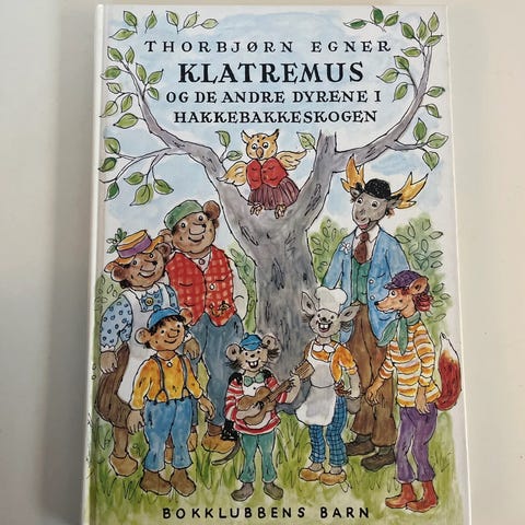 Thorbjørn Egner sin barnebok om Klatremus og de andre dyrene i Hakkebakkeskogen. Koselige illustrasjoner med sanger og spennende tekst. Fremstår som ny. Sendes mot porto.