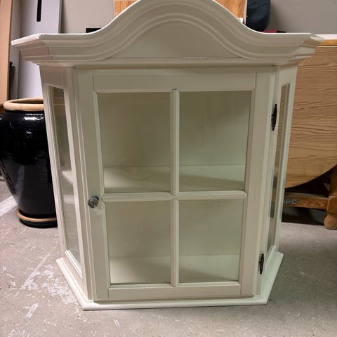 Pent brukt skjenk/vitrineskap selges. Det er usikkert hvor den er fra men den er kjøpt sent på 90 tallet/ evt tidlig 2000 tallet.
