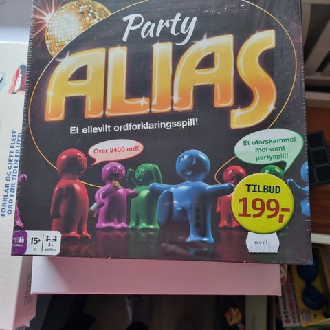 Party Alias Brettspill med fokus på ordforklaringsspill. Egnet for 15 år og oppover, og for 4-16 spillere.