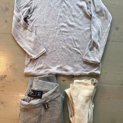 Stor ullpakke str 122/128. Safa, Janus, Woolland etc. Det meste veldig pent brukt, buksa fra Woolland er lappa på kneet.