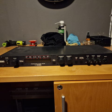 Roland GL-100. Antageligvis kjernen til en Roland JC forsterker uten chorus effekten. Har to kanaler, kan kobles til switcher, der en kanal er type crunch og den annen er distortion med i følge det jeg leste på nett, innebygde DS2 og HM2, helt analogiske. Selges fordi jeg tar denne ikke i bruk akkurat nå og har ikke rack oppsett