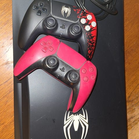 Playstation 5 Spider-Man tematisert konsoll og kontroller
