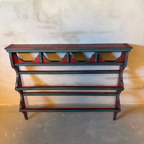 Tallerkenhylle med tre skuffer til salgs.
