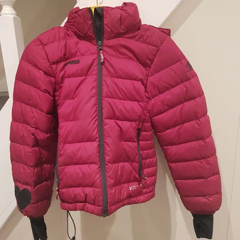 Helly Hansen barnedress i størrelse 122 for jenter. Dressen er laget av polyamid og har en rosa farge med flere nyanser. Den har hette og glidelåslommer, samt forsterkninger på knærne.helt ny kostet over 1200 kroner. den er ikke veldig tykk, mer høstlig