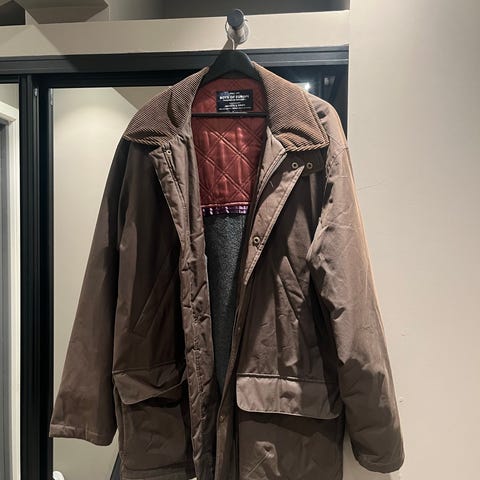 GANT Double Decker frakk i brun skinn for herre, størrelse M. Frakken har innvendig ullfor med logo og flere lommer, inkludert glidelåslommer og åpne lommer. Designet for utendørs bruk med en kombinasjon av skinn ytterstoff og myk ull på innsiden. Innerdelen kan tas ut. Som ny!