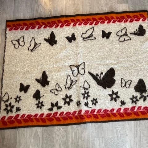 Pent brukt Røros tweed babyteppe 70 cm x 100 cm selges for kr. 450. Varmt og godt. Veldig lite brukt. Røyk-og dyrefritt hjem.