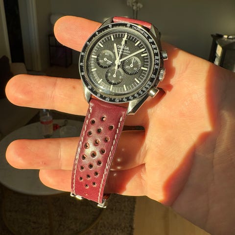 Zenith Rubber strap with perforated leather insert ivory color, 21/18 mm El Primero Range Rover 24,2040,400/27. For chronographs and watches with 21mm lugs . Length of 115 and 75mm pieces. Can be used with deployant clasp and pin buckle.