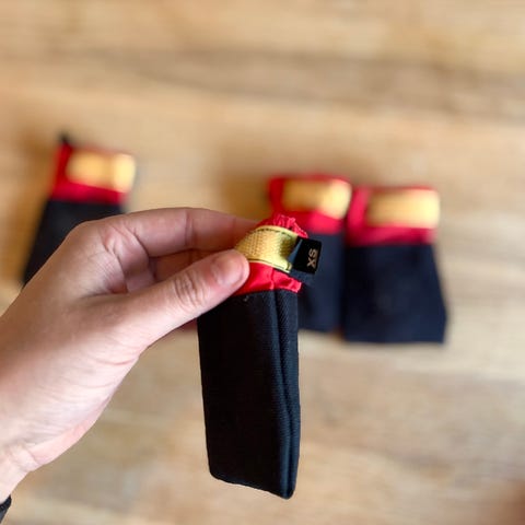 Brukt på én tur, de er for små. Kan gjerne byttes mot større evt! Størrelse Large. Litt små til kongepuddel med masse pels.